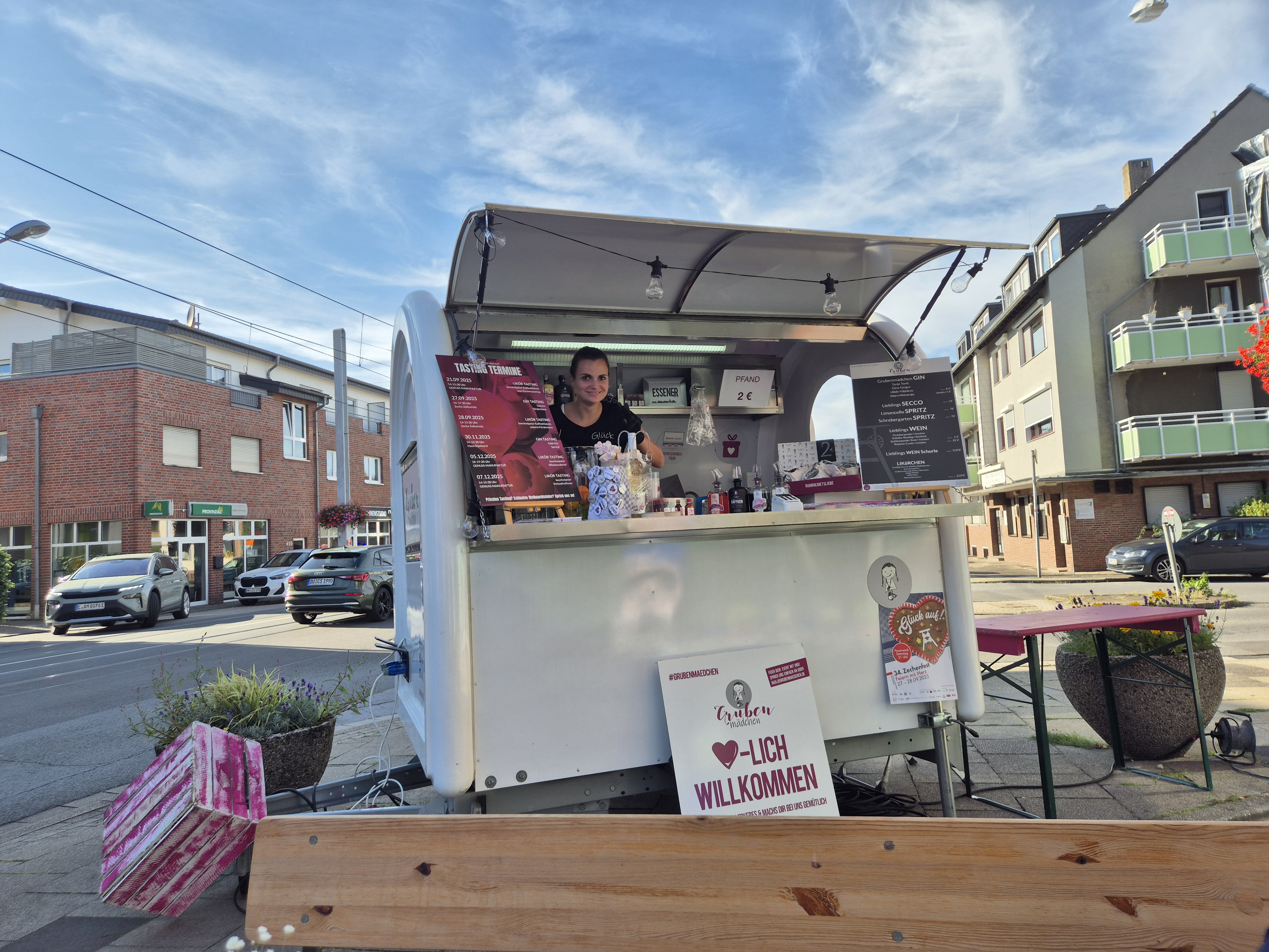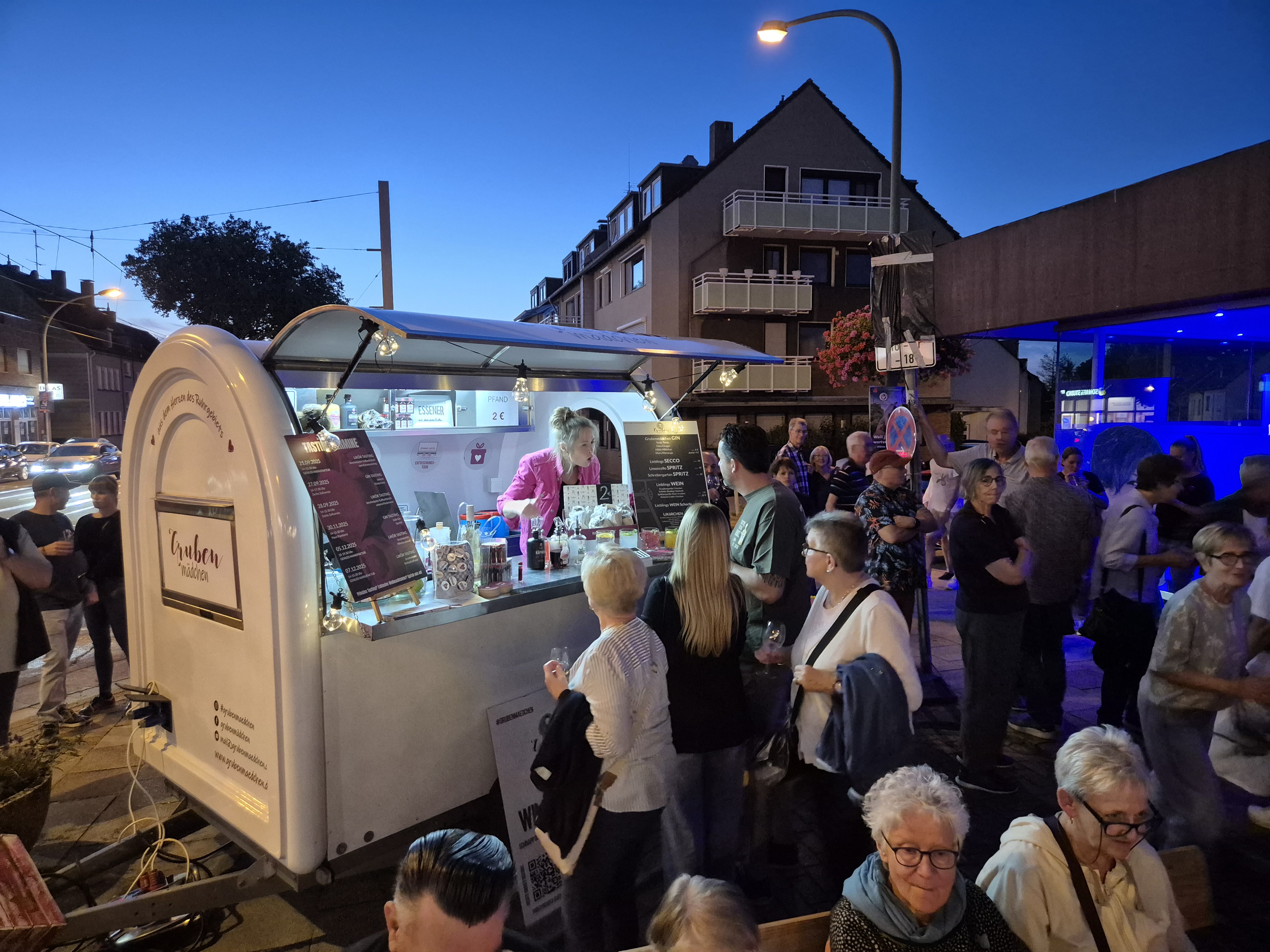 Unterstützt von den „Grubenmädchen“, die mit ihrem Gastroanhänger „Hannelore“ handgemachtes ausgeschenkt haben, konnte bei bestem Stadtfestwetter zum Sound der Ballroomrockets geschwoft werden.